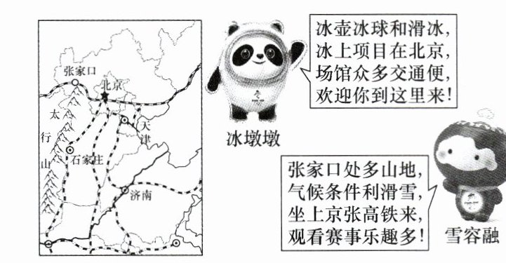 10.2022年第24届冬奥会由北京与张家口联合举办,冰墩墩和雪容融是冬奥会的吉祥物。读图,回答下列问题。