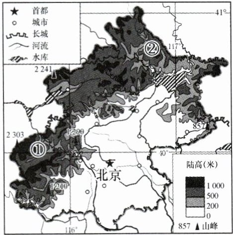 2021年10月9日上午,纪念辛亥革命110 周年大会在北京人民大会堂隆重举行。结合北京市地形图,完成7~9题。