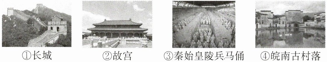 ①长城 ②故宫 ③秦始皇兵马俑 ④皖南古村落