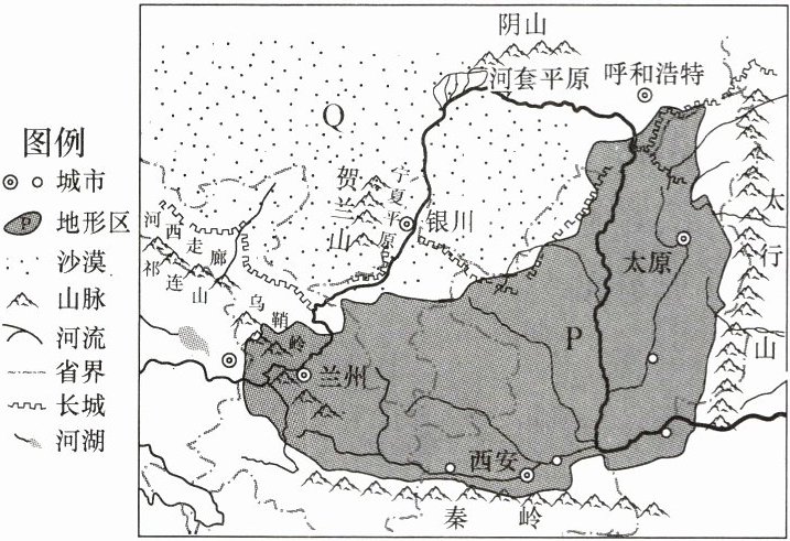(3)P地形区主要城市多沿河流分布,主要原因是河流提供水源(任写一条)。