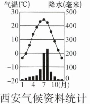 (2)西安的气候类型为温带季风气候,其特征是夏季高温多雨,冬季寒冷干燥。