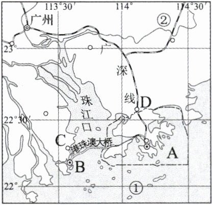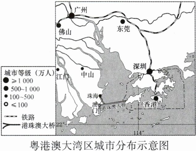 粤港澳大湾区是建设中的世界级城市群,由广州、深圳、珠海等大城市和香港、澳门特别行政区组成。读图,完成4~5题。