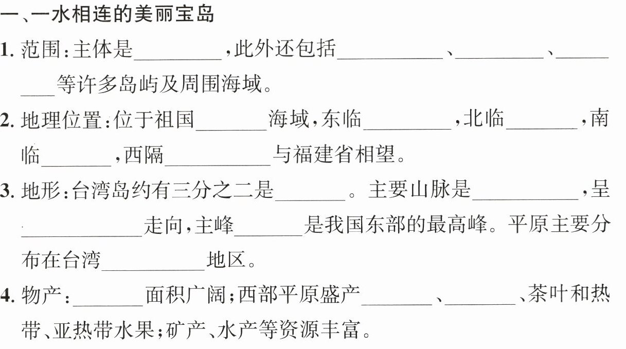 1. 下列关于台湾位置和范围的叙述,正确的是( )
