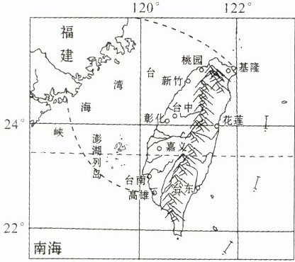 14.(昆明盘龙区一模改编)读“台湾省示意图”,下列描述正确的是( )