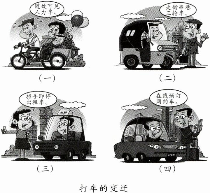 6. 下面漫画《打车的变迁》反映了改革开放以来,我国 ( )