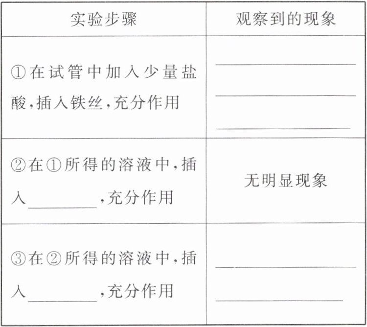 |①在试管中加入少量盐酸,插入铁丝,充分作用|______________________|