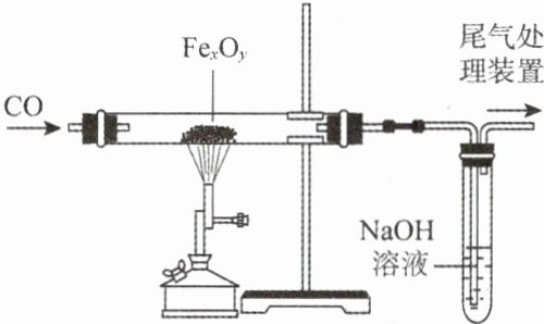 反应前大玻璃管中加入铁的氧化物(FeₓOᵧ)试样的质量为12.6g。加热前,应先往大玻璃管中通入CO气体的原因是______。实验结束后,继续通入CO气体,直至大玻璃管冷却。此时NaOH溶液的质量增加了7.7g(提示:CO₂+2NaOH = Na₂CO₃+H₂O)。推算该铁的氧化物的化学式中x、y的比为______(填最简整数比)。