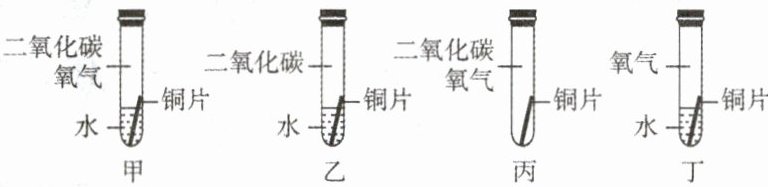 7. 某同学根据铜绿的成分Cu₂(OH)₂CO₃作出猜想:金属铜锈蚀的条件除有氧气和水分外,还必须有二氧化碳。为证明“必须有二氧化碳”,需要进行下图所示实验中的( )