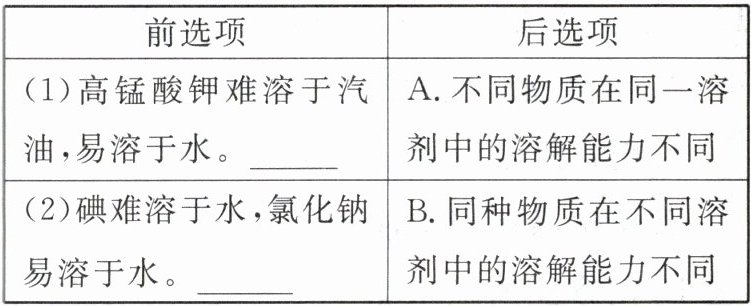 点拨:蔗糖和氯化钠溶于水,溶液的温度不发生变化;硝酸铵溶于水,溶液的温度降低;氢氧化钠固体溶于水,溶液的温度升高;浓硫酸加入水中稀释过程产生大量热。要注意:生石灰(CaO)加入水中也放出大量的热,其原因是生石灰和水反应生成氢氧化钙,化学反应过程产生大量的热。