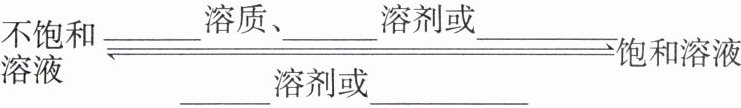 点拨:饱和溶液是“一定温度”“一定量溶剂”条件下的饱和,通过改变“温度”“溶剂质量”等条件可以变为不饱和溶液;同样,不饱和溶液可以改变“温度”“溶剂质量”“溶质质量”等条件变为饱和溶液。任何不饱和溶液都可以加入溶质或恒温蒸发溶剂变为饱和溶液,如果通过改变温度的方式需要根据溶质的种类来判断是升温还是降温。
