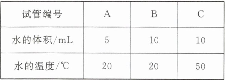 4.现有三支试管,分别加入不同温度和体积的水,试管编号及相关数据如下表。