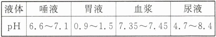 4.(邵阳中考)下列是人体内一些液体的正常pH范围,其中酸性最强的是( )