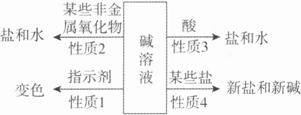 [例2] 请结合某同学对碱的四点化学性质的归纳图完成以下问题(箭头上方的物质是指与碱反应的物质)。