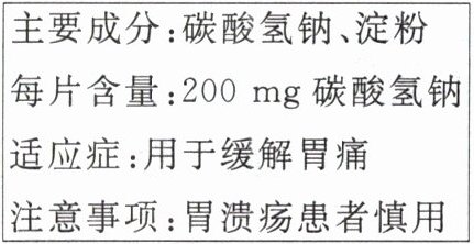 5. (河南中考)如图是某胃药标签的部分文字说明。碳酸氢钠与胃酸(含盐酸)作用的化学方程式为____________________;如果将该胃药中的碳酸氢钠用相同质量的碳酸镁代替,则每次用药量应______(填“增加”“减少”或“不变”)。