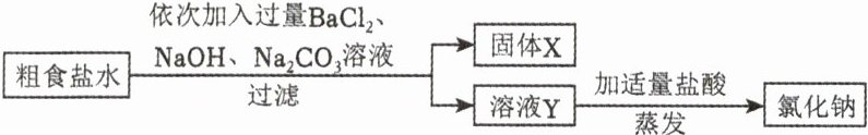 7. (河南中考)粗食盐中含有泥沙和MgCl₂、CaCl₂、Na₂SO₄杂质。某同学将粗食盐样品溶解、过滤,除去泥沙后,取粗食盐水按以下流程进行提纯。