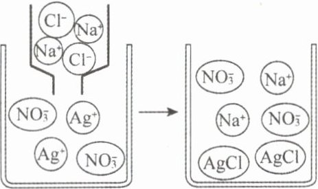 3. 如图是硝酸银溶液与氯化钠溶液恰好完全反应的微观示意图,由此得出的结论错误的是 ( )