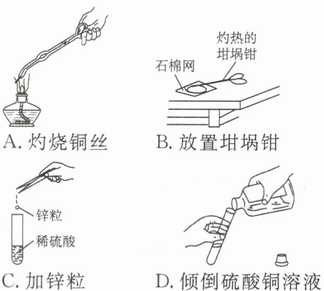 8. 小明实验操作考试的题目是“探究金属的化学性质”,下图是他实验操作考试中的部分情景: