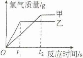 6. 将等质量的甲、乙两种金属分别与足量的相同溶质质量分数的稀硫酸反应,产生氢气的质量与反应时间的关系如下图。关于甲、乙两种金属判断合理的是 ( )