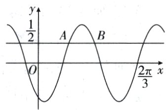 15. (2023·新课标Ⅱ卷)已知函数$f(x)=\sin(\omega x+\varphi)$,如图,$A,B$是直线$y=\frac{1}{2}$与曲线$y = f(x)$的两个交点,若$|AB|=\frac{\pi}{6}$,则$f(\pi)=$________.