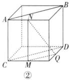 ∴直线AB与平面MNQ相交.对于B,作如图②所示的辅助线,则AB//CD,CD //MQ,