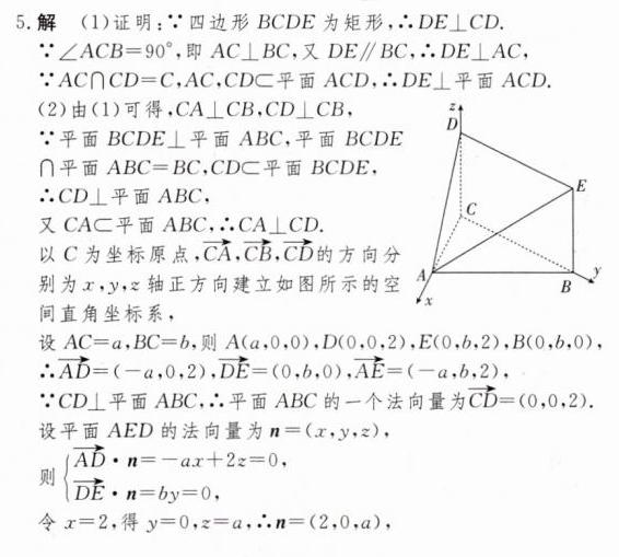 5.(2024·福建龙岩上杭县第一中学高三月考)如图,矩形$BCDE$所在平面与$\triangle ABC$所在平面垂直,$\angle ACB = 90^{\circ}$,$BE = 2$.