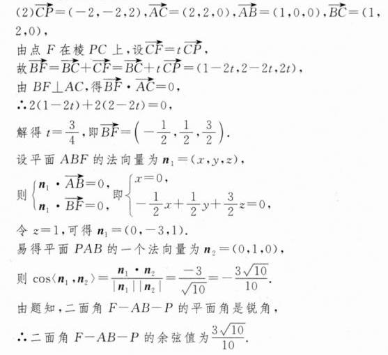 (2)若$F$为棱$PC$上一点,满足$BF\perp AC$,求二面角$F - AB - P$的余弦值.