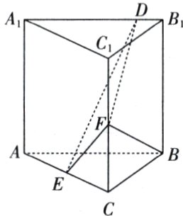 所以CF = 1,BF = $\sqrt{5}$,连接AF,由BF⊥A₁B₁且AB//A₁B₁,得BF⊥AB,所以AF = 3.