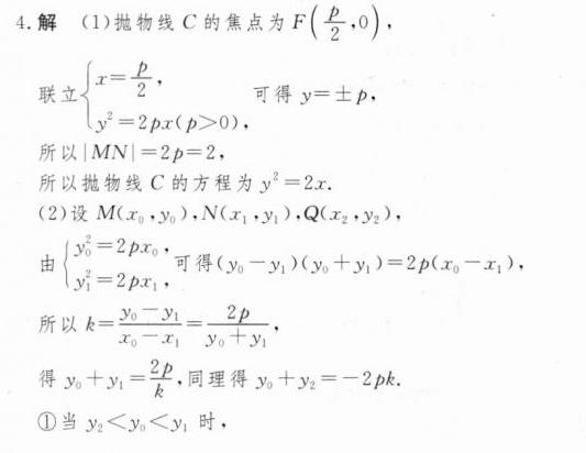 4.(2023·浙江绍兴模拟预测)已知抛物线$C:y^{2}=2px(p\gt0)$,直线$l_{1}$与抛物线$C$交于$M$,$N$两点($N$在$M$的上方)。