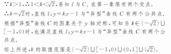 (3)直线l:y = kx - 1与“异型”曲线C有公共点A(0,-1).