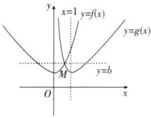 直线y=b与两条曲线y=f(x)和y=g(x)共有三个不同的交点,
