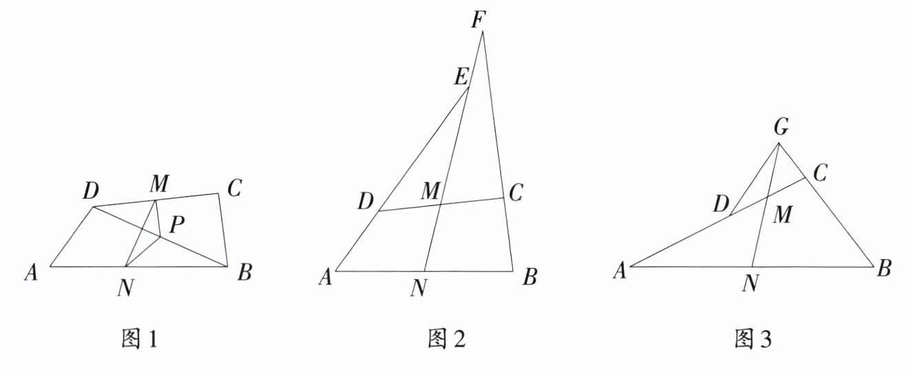 如图1,在四边形$ABCD$中,$AD = BC$,$P$是对角线$BD$的中点,$M$是$DC$的中点,$N$是$AB$的中点.