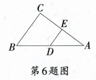 6. 如图所示,DE是△ABC的中位线,若$S_{\triangle ADE}=2$,则$S_{\triangle ABC}$等于 ( )