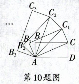 10. 如图,在矩形ABCD中,AB = 1,BC = 2,连结AC,以对角线AC为边,按逆时针方向作矩形$ACC_{1}B_{1}$,使矩形$ACC_{1}B_{1}\sim$矩形ADCB;再连结$AC_{1}$,以对角线$AC_{1}$为边,按逆时针方向作矩形$AC_{1}C_{2}B_{2}$,使矩形$AC_{1}C_{2}B_{2}\sim$矩形$ACC_{1}B_{1}$,…,按照此规律作下去,则边$AC_{2023}$的长为 ( )