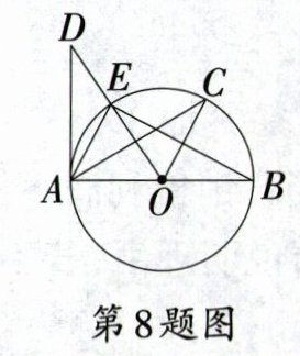 8. 如图,已知AB是⊙O的直径,DA与⊙O相切于点A,$\widehat{EC}=\widehat{CB}$,则下列结论中不一定正确的是 ( )
