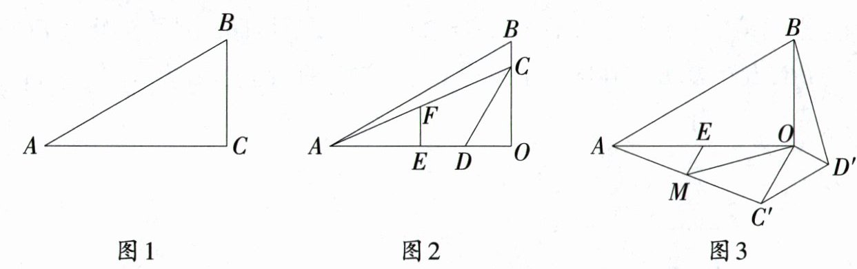 (1)问题解决:如图2,在Rt△AOB中,$\angle AOB = 90^{\circ}$,$\angle OAB = 30^{\circ}$,点C在边OB上,点D在边OA上,$\angle OCD = 30^{\circ}$,点E,F分别为OA,AC的中点. 则$\frac{EF}{OD}=$_______,$\frac{OE}{OB}=$_______.