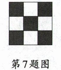 7. 一个小球在如图所示的地板上自由滚动,并随机停在某块方砖上. 如果每一块方砖除颜色外完全相同,那么小球最终停留在黑砖上的概率是 ( )