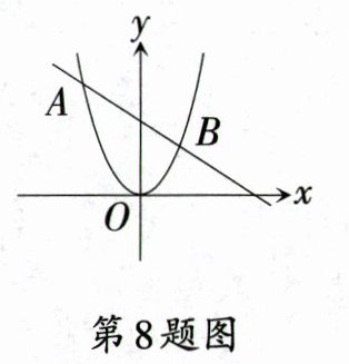8. 如图,抛物线$y = ax^{2}$与直线$y = bx + c$的两个交点坐标分别为$A(-2,4)$,$B(1,1)$,则关于$x$的不等式$ax^{2}-bx - c\geqslant0$的解集为 ( )