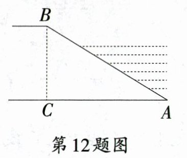12. 如图,某河堤迎水坡$AB$的坡比$i = 1:\sqrt{6}$,河堤高$BC = 3\text{ m}$,则河堤的坡面$AB$的长为_______m.