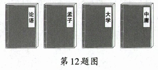 12. 我国古代的“四书”是指《论语》《孟子》《大学》《中庸》,它们是儒家思想的核心著作,是我国传统文化的重要组成部分.如图,若从这四本著作中随机抽取两本(先随机抽取一本,不放回,再随机抽取另一本),则抽取的两本恰好是《论语》和《大学》的概率是________.