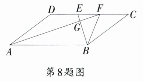 8.〔重庆市改编〕如图,四边形$ABCD$为平行四边形,$AF,BE$分别为$\angle DAB,\angle CBA$的平分线,且$AD = 2,AB = 3$,则$S_{\triangle EFG}:S_{\triangle ABF}=$( )
