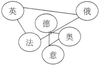 1. 右图反映了某一历史时期的欧洲局势。其中,英、法、俄组成的军事集团称为 ( )