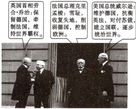 7.第一次世界大战刚刚结束,战胜的协约国就迫不及待地展开新的争夺,地点从硝烟弥漫的战场转移到了唇枪舌剑的谈判桌旁。阅读材料,回答问题。