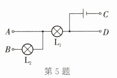 5.(自贡中考)如图所示,A、B、C、D是四个接线柱,要使灯L₁、L₂并联,应用导线分别连接________两接线柱和________两接线柱。