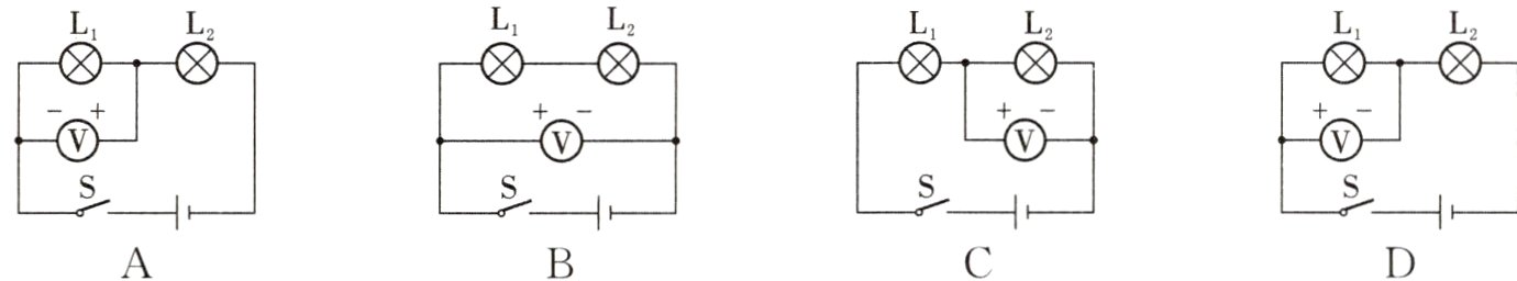 10.下列选项中,闭合开关后能正确地测出小灯泡L₁两端电压的电路是( )
