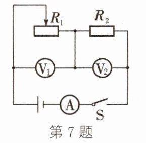 7.(海南中考)如图电路中,电源电压不变,闭合开关S,向右移动滑动变阻器R₁的滑片,下列数据变小的是 ( )