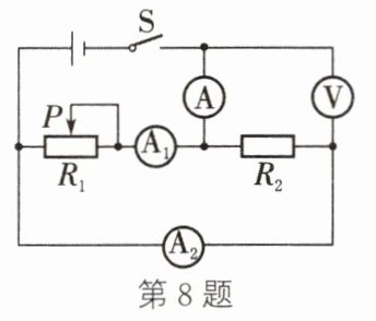 A.电流表A和电流表A₂示数均变小 B.电压表V与电流表A₂示数乘积变大