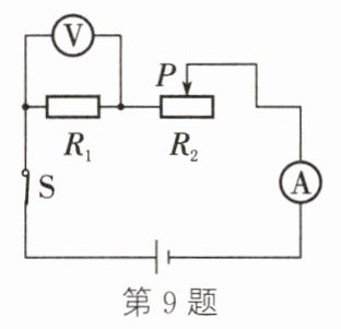 9.(上海中考)在如图所示的电路中,电阻R₁的阻值为10Ω,滑动变阻器的滑片P位于中点。用一阻值为20Ω的电阻替换R₁,可能使电压表示数与替换R₁前相等的方法是 ( )