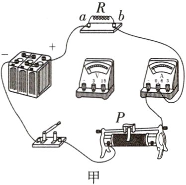 (1)同学们设计并连接了如图甲所示的实验电路,想用电压表的0 ~ 3V量程测量定值电阻R两端的电压,请你用笔画线代替导线,帮助他们把电压表正确连接在电路中(导线不能交叉)。