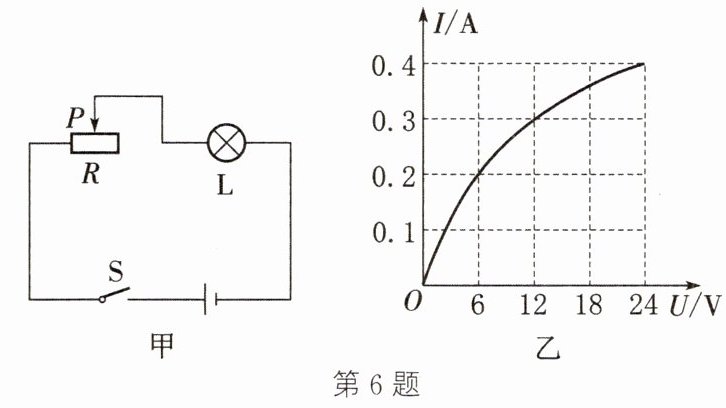 6.(龙东地区中考)如图甲所示的电路中电源电压不变,小灯泡L的额定电压为24V,闭合开关,当把滑片P滑到最左端时,小灯泡恰好正常发光。图乙为通过灯泡L的电流与其两端电压的关系,当小灯泡正常发光时,灯丝的电阻为________Ω。调节滑动变阻器R的滑片,当其连入电路的阻值是________Ω时,小灯泡的实际功率为3.6W。