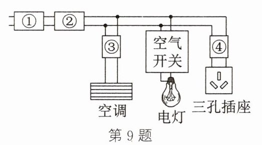 9.“安全用电,珍爱生命”是同学们应有的意识。小华同学家的配电系统如图所示,关于空气开关、电能表和漏电保护器的安装位置,下列说法不正确的是( )